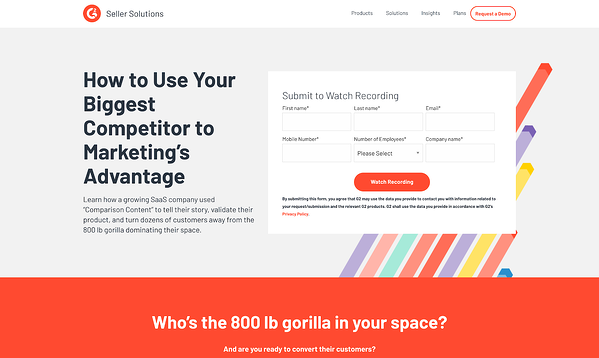 查看 G2 的精彩登陆页面集合,了解更多关于如何使用登陆页面来转换传入潜在客户的信息。