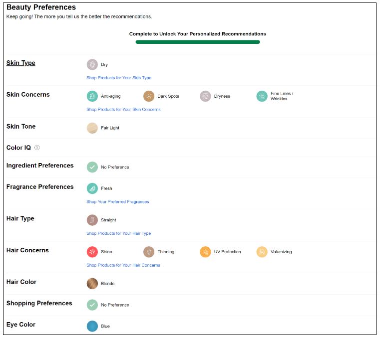على سبيل المثال ، تنفذ Sephora عملية جمع البيانات بشكل جميل أثناء عملية التسجيل في برنامج Beauty Insider. يمكن للأعضاء الحصول على معلومات محددة حول كل شيء بدءًا من مخاوف البشرة إلى تفضيلات مكونات المنتج ، مما يسمح لـ Sephora بالترويج للمنتجات والعروض ذات الصلة بكل فرد.