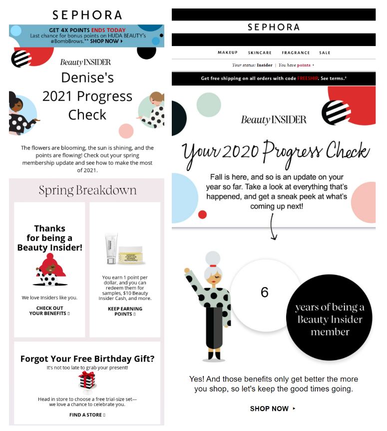 تتيح رسائل Milestone أو تقارير التقدم للعلامات التجارية إعادة تأكيد علاقاتها مع المشتركين. تساعد هذه الرسائل في إبراز القيمة الفريدة التي يوفرها برنامج الولاء الخاص بالعلامة التجارية من خلال مجالات مثل النقاط المكتسبة والعروض المجانية المنسية والتذكيرات حول المدة التي قضاها العضو جزءًا من برنامجك.
