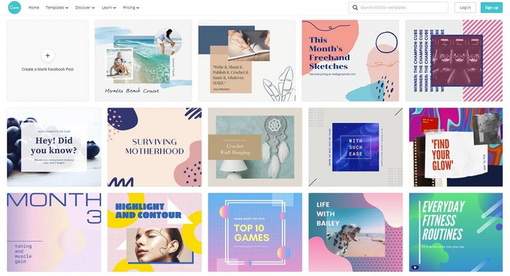 أداة تصميم الويب الاحترافية الأخرى التي استحوذت على الإنترنت هي Canva. إنها منصة تصميم شائعة تقدم قوالب مصممة مسبقًا لمواقع الويب الخاصة بك. علاوة على ذلك، يمكنك أيضًا تحديد الصور من مكتبة مخزون ضخمة لإضافتها إلى موقع الويب. واجهة المستخدم سهلة المتابعة، بغض النظر عما إذا كنت مصممًا مبتدئًا أو ماهرًا.