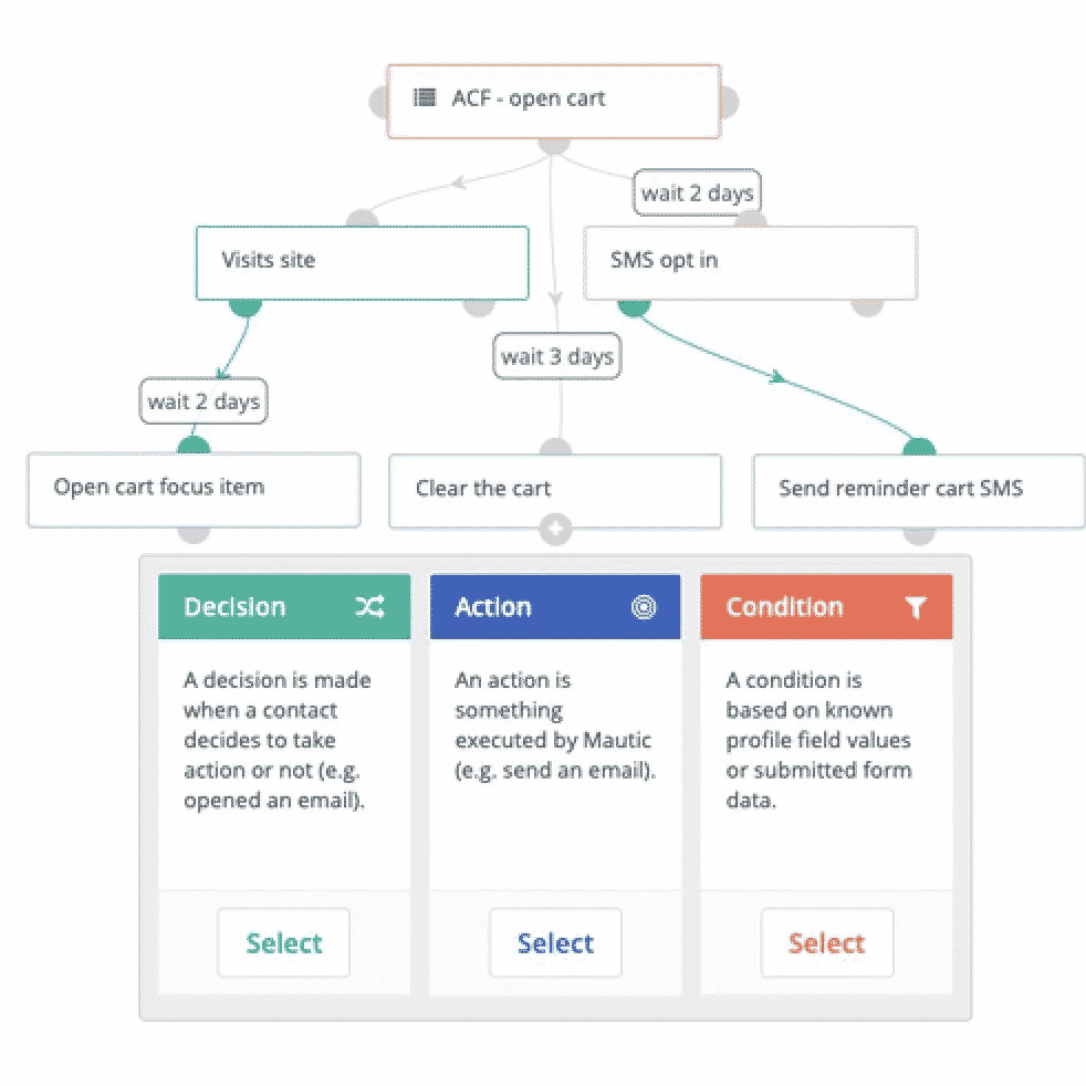 - يعد Acquia Campaign Studio (المعروف سابقًا باسم Mautic ، والذي تم شراؤه في عام 2019) أحد حلول تنسيق رحلة العملاء الذي يسمح للعلامات التجارية بمواءمة استراتيجياتها الرقمية وإنشاء تجارب عملاء استثنائية وتنظيمها وتقديمها عبر جميع القنوات.