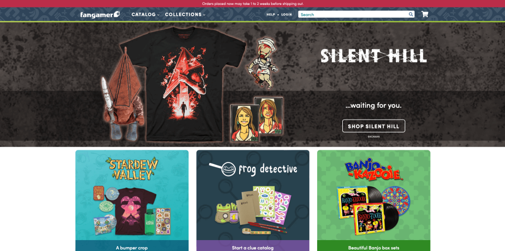 Fangamer هي شركة لبيع ألعاب الفيديو مقرها في توكسون ، أريزونا. لديهم مجموعة لا تصدق من العناصر ، وموقعهم على شبكة الإنترنت سهل الاستخدام للغاية. بالإضافة إلى ذلك ، فإن اختيارهم للألوان مثير للإعجاب - فهم يستخدمون الكثير من الأسود والأبيض والأزرق ، مع لمسات من الألوان هنا وهناك. تصميمهم نظيف وحديث ، ويسعدني تصفح موقعهم. يمكنك شراء كل شيء من الملصقات إلى القمصان والبطانيات ، بالإضافة إلى أنواع أخرى من البضائع. نحن نحب أيضًا أن يكونوا مستجيبين جدًا على وسائل التواصل الاجتماعي ؛ إذا كان لديك أي أسئلة أو تعليقات عليها ، فعادة ما يردون عليك في غضون يوم أو يومين. لم يعد كثيرًا ما تجد خدمة عملاء مثل هذه بعد الآن!