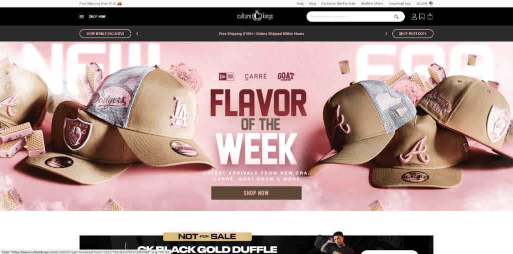 ملوك الثقافة هي واحدة من أفضل مواقع Shopify بسبب اختيار اللون. لديهم مخطط ألوان أسود وأبيض وذهبي يجعل موقع الويب الخاص بهم يبدو نظيفًا وحديثًا. كما أن تصميمها أضيق الحدود ، مما يجعل التنقل فيه أمرًا سهلاً. بالإضافة إلى ذلك ، لديهم العديد من المنتجات الفريدة التي لا يمكنك العثور عليها في أي مكان آخر. لديهم لمسة منبثقة ورائعة لموقعهم من خلال كيف تمثل لافتاتهم العلامة التجارية ومتجر Shopify بشكل عام. على سبيل المثال ، جميع اللافتات الموجودة على الصفحة الرئيسية رائعة وممتعة. صفحات أخرى بسيطة ، مع صور الزي وبعض الفقرات حول سبب إعجابهم بها. الطريقة التي أداروا بها صفحات المجموعة الخاصة بهم ملحوظة.
