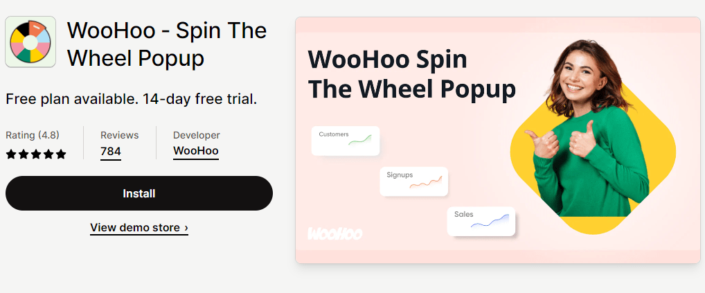 WooHoo هو تطبيق آخر من تطبيقات Shopify gamification يتيح لك تحويل متجرك من عادي وبسيط إلى جذاب وجذاب.