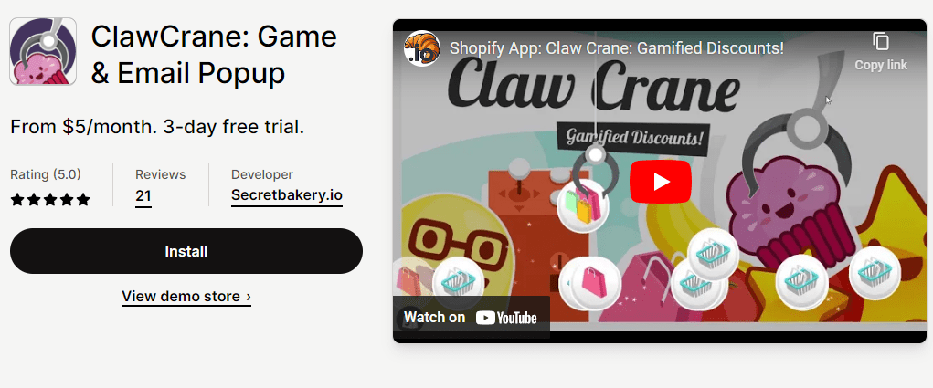 7. ClawCrane: اللعبة والبريد الإلكتروني المنبثق