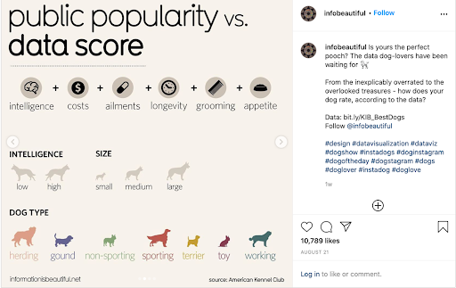 علاوة على ذلك ، يمكنك تفصيل هذه الرسوم البيانية في سلسلة من الصور التي تم اقتصاصها بتنسيق تجانب 1: 1 لتسهيل المشاركة على Instagram مثل هذا الذي يوضح البيانات لمساعدتك في العثور على أفضل كلب!