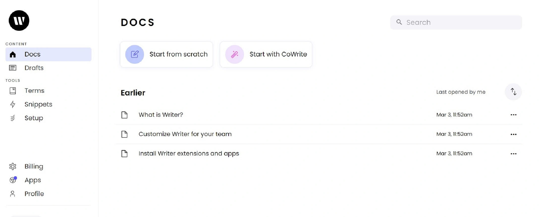 Writer.com عبارة عن منصة لكتابة المحتوى تعمل بالذكاء الاصطناعي، وهي مصممة لمساعدة الكتاب في العثور على أفضل الكلمات، والالتزام برسالة معينة، وتصحيح الأخطاء النحوية. يهدف التطبيق إلى توحيد مهام المحتوى المكتوب المختلفة وتوفير الوقت وتبسيطها. إنه مصمم خصيصًا للشركات، مع التركيز على احتياجات فرق التسويق، ووكالات العلامات التجارية، ومديري وسائل التواصل الاجتماعي، وأقسام المبيعات والموارد البشرية، والعلاقات العامة، ومهام سير العمل الكتابية الأخرى المتعلقة بالأعمال. يبرز موقع Writer.com من خلال تقديم منصة لبناء دليل الأسلوب الذي يمكّن الفرق أو الشركات بأكملها من وضع قواعد للأسلوب واللغة والنغمة وغير ذلك الكثير.