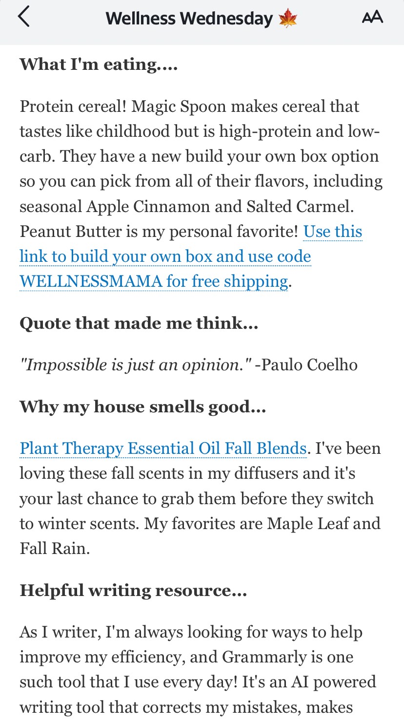 من الأمثلة على شخص يتمتع بالسلطة في مجال الصحة والعافية كاتي ويلز ، والمعروفة أيضًا باسم ويلنس ماما . تدير كاتي مدونة ، ومتجرًا للتجارة الإلكترونية ، وبودكاست ، وترسل رسائل إخبارية أسبوعية وتنشط على جميع المنصات الاجتماعية الرئيسية. ينظر إليها جمهورها على أنها مصدر موثوق لكل الأشياء الصحية حيث أنها أنشأت منصة في هذا المجال على مدار عدة سنوات. بالإضافة إلى ذلك ، في نشراتها الإخبارية الأسبوعية عبر البريد الإلكتروني ، عادة ما يكون هناك العديد من الروابط التابعة المضمنة.