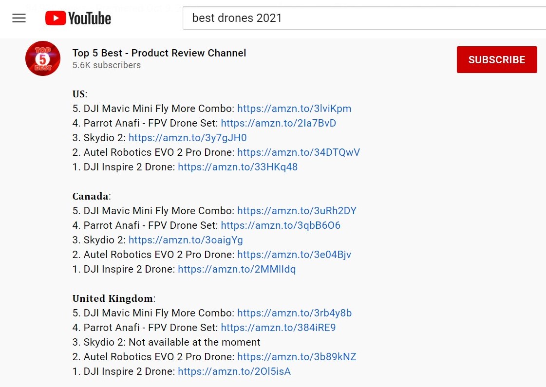 استعراض الطائرات بدون طيار هذا هو الفيديو الأعلى تصنيفًا لـ "أفضل الطائرات بدون طيار في عام 2021" ، ويحتوي الوصف على العديد من الروابط التابعة لشركة Amazon Associates.