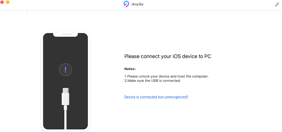 الخطوة 2 : الآن ، قم بتشغيل البرنامج ، وقم بتوصيل جهاز الكمبيوتر الخاص بك بجهاز iOS.