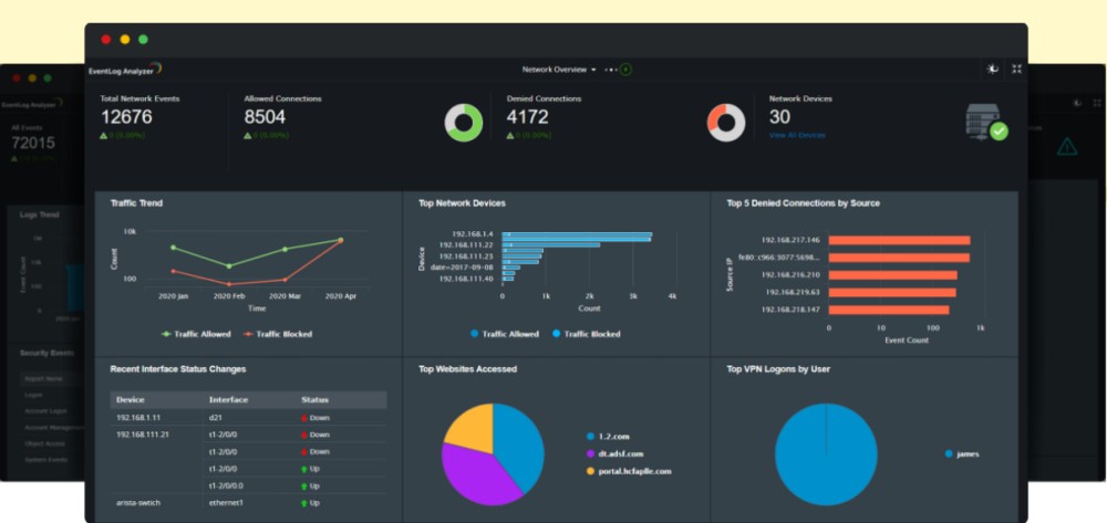 ستتلقى تنبيهات حول التهديدات الأمنية ، مثل سرقة البيانات وهجمات القوة الغاشمة وتثبيت البرامج المشبوهة وهجمات حقن SQL ، من خلال ربط البيانات بمصادر السجل المختلفة. يوفر EventLog Analyzer معالجة سجلات عالية السرعة ، وإدارة شاملة للسجلات ، وتدقيقًا أمنيًا في الوقت الفعلي ، وتخفيفًا فوريًا للتهديدات ، وإدارة الامتثال.