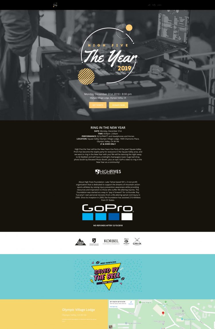 يمكنك أيضًا إنشاء رموز ترويجية خاصة لتمريرها وجذب المزيد من الحضور. أخيرًا ، يمكنك تضمين عبارة تحث المستخدم على اتخاذ إجراء "تبرع" بحيث يظل بإمكان أي شخص لا يمكنه حضور الحدث تقديم تبرع للدعم ، مثلما فعلت مؤسسة High Fives Foundation: