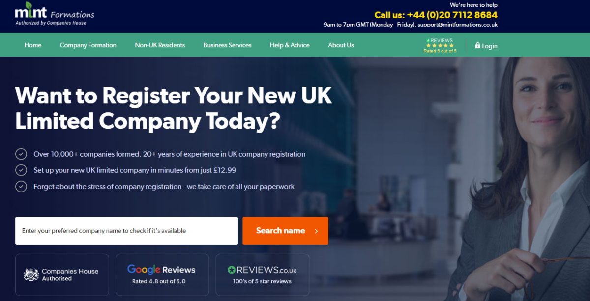 يمكنك اختيار التسجيل الرقمي السهل أو حل جميع الأشياء ، بدءًا من تسجيل ضريبة القيمة المضافة ، وعنوان العمل المسجل إلى خدمة السكرتارية.