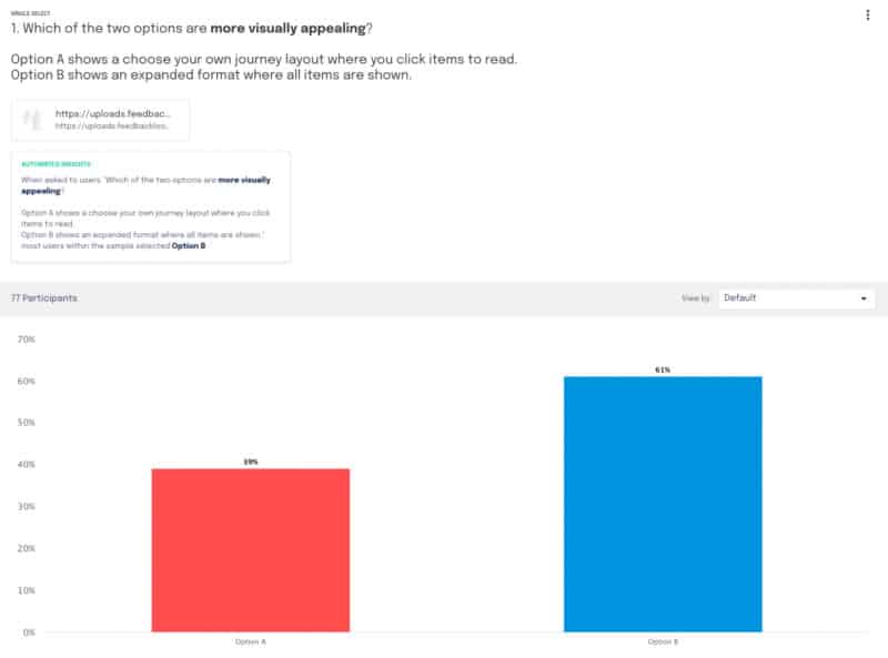 قال بيكر: "أنا شخصياً أحب التفاعل مع المواقع الإلكترونية بهذه الطريقة ، وأعتقد أن الآخرين سيفعلون ذلك أيضًا". استخدموا منصة Feedback Loop لاختبار فرضيتهم القائلة بأن المستخدمين يفضلون تجربة أنظف من شأنها أن تشجعهم على النقر للحصول على المعلومات المحددة التي يريدونها.