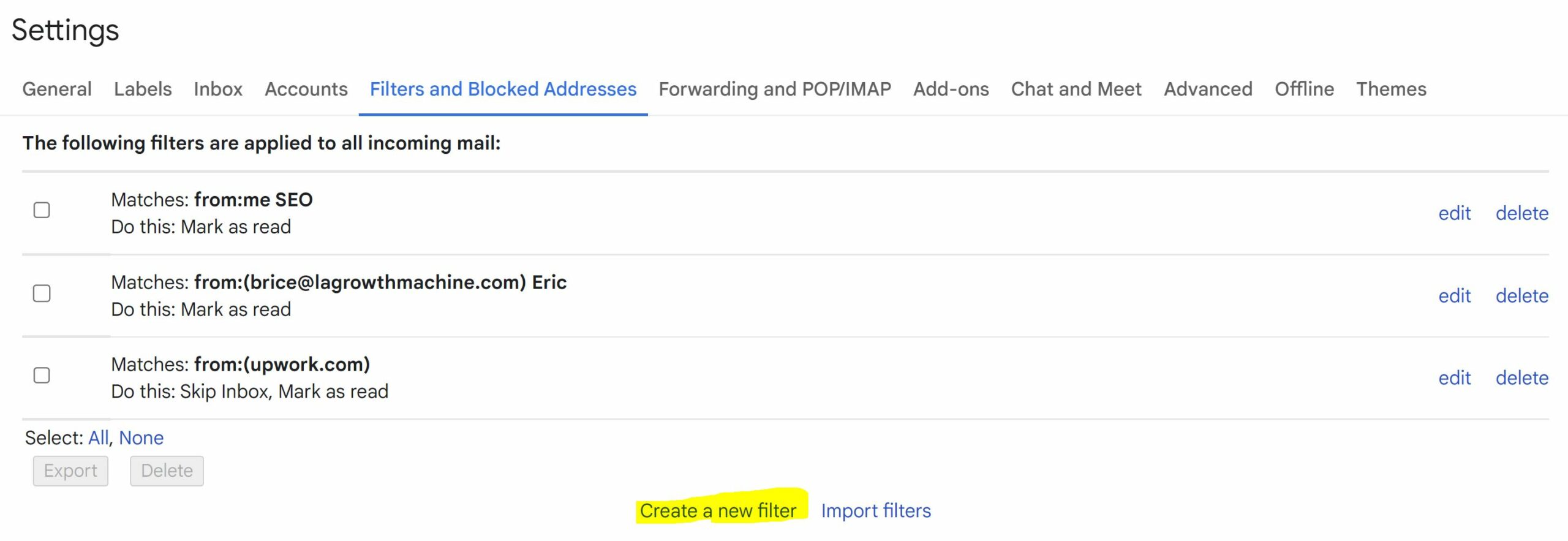 يمكنك أيضًا استخدام ميزة الفلاتر لنقل أو حذف رسائل البريد الإلكتروني التسويقية والترويجية تلقائيًا!