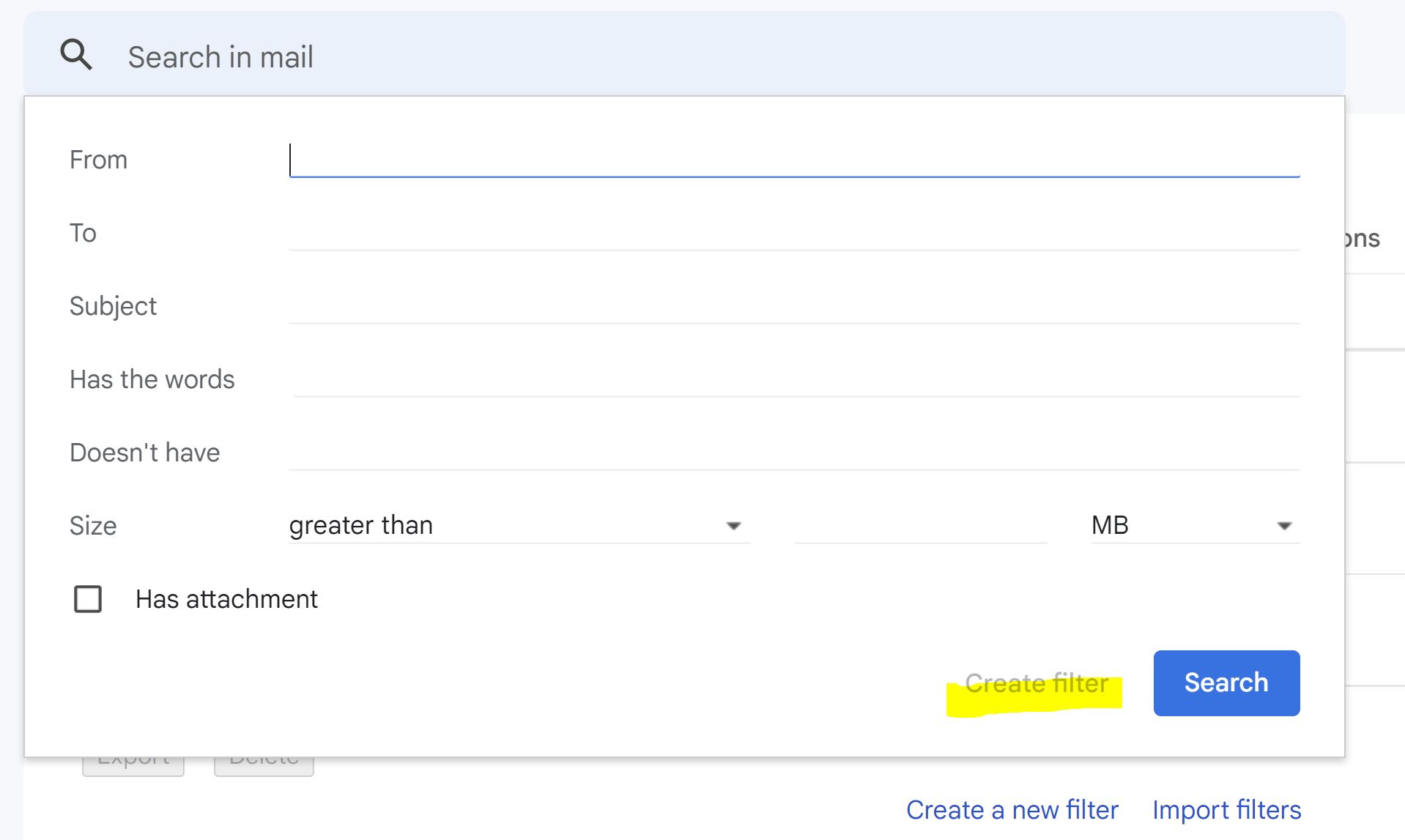 - انقر فوق "إنشاء مرشح جديد" ؛