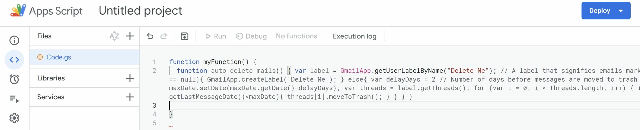 تمامًا مثل أي رمز JS ، يمكنك إعداد قواعد الأتمتة في وحدة التحكم من خلال Google Script لأتمتة مهام البريد الإلكتروني ، مثل حذف رسائل البريد الإلكتروني بعد عدد محدد من الأيام.