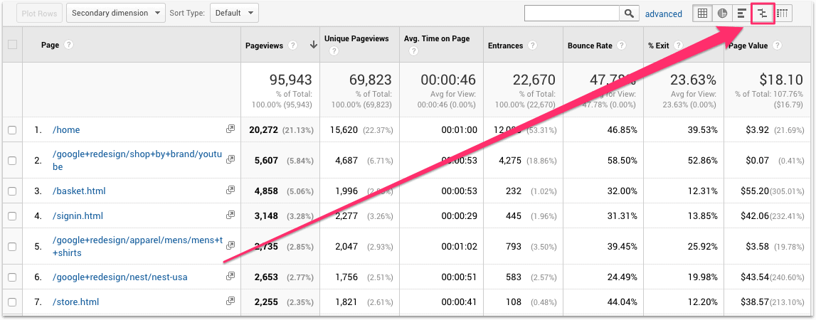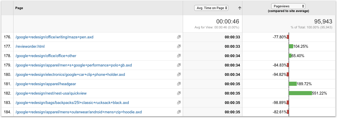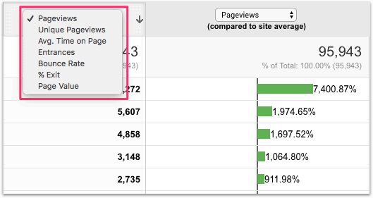 هذه طريقة سهلة لمعرفة كيفية أداء كل جزء من المحتوى مقابل المتوسط على مستوى الموقع لهذا المقياس: