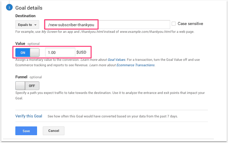 انتقل إلى التحويلات> الأهداف> مسار الهدف العكسي .