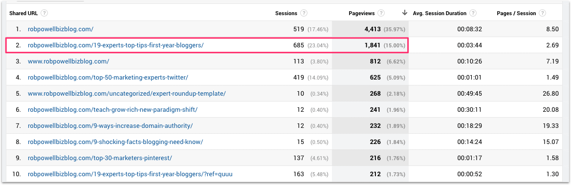 مرة أخرى ، سيخبرك هذا بسرعة بأنواع المحتوى على مدونتك التي تحظى بأكبر قدر من الاهتمام.