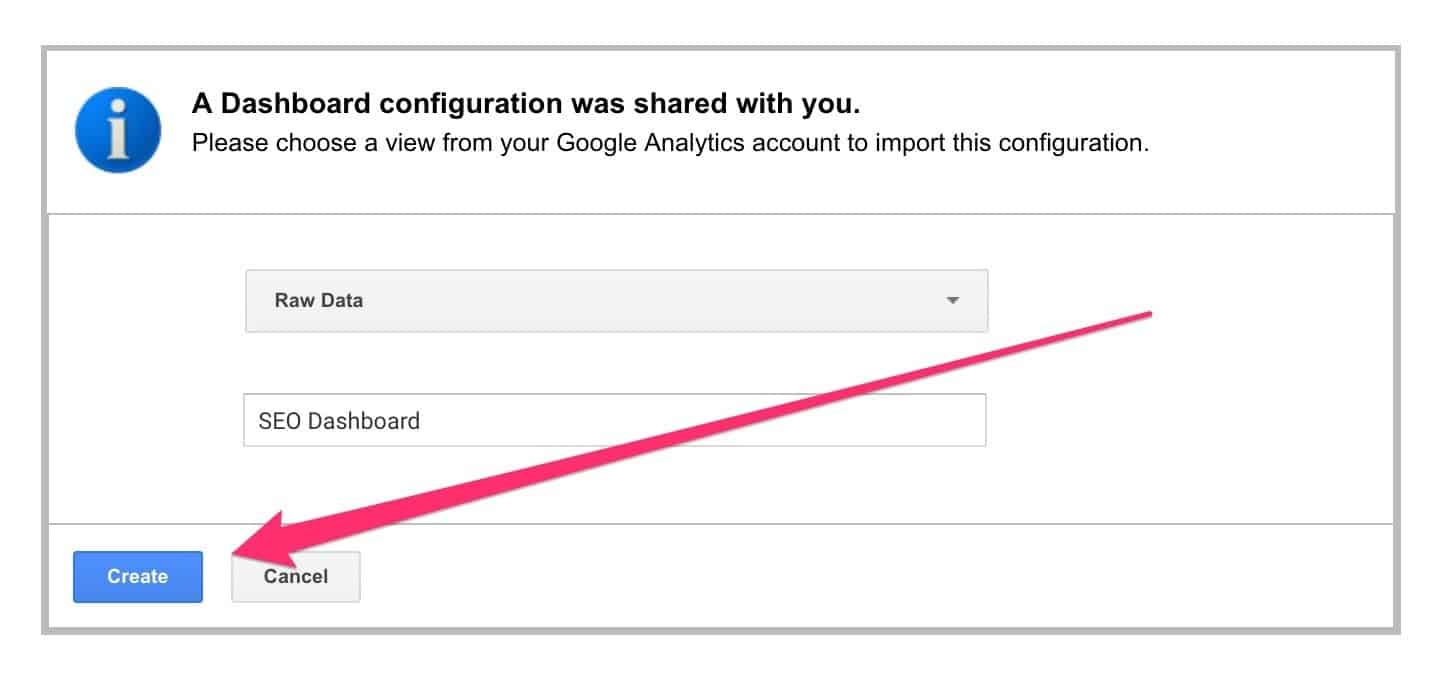 تقدم Google مكتبة من لوحات التحكم الجاهزة. لاستيراد أحد هذه العناصر ، انقر فوق الزر "إنشاء":