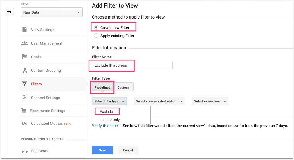 للقيام بذلك ، تحتاج إلى إنشاء عامل تصفية في GA. هيريس كيفية القيام بذلك:
