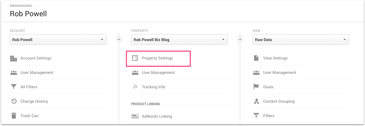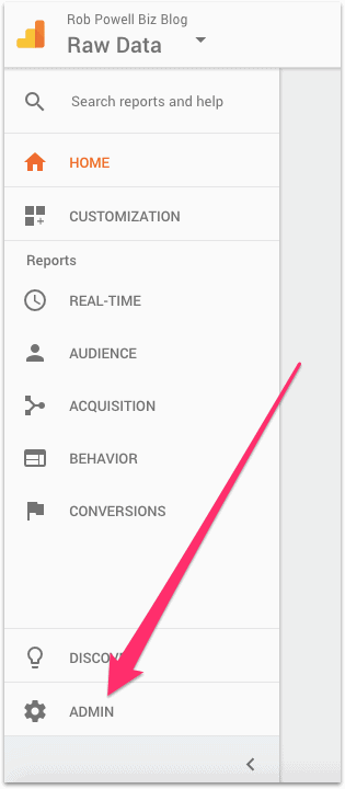 قم بتسجيل الدخول إلى حساب Google Analytics الخاص بك وانقر فوق ترس المسؤول:
