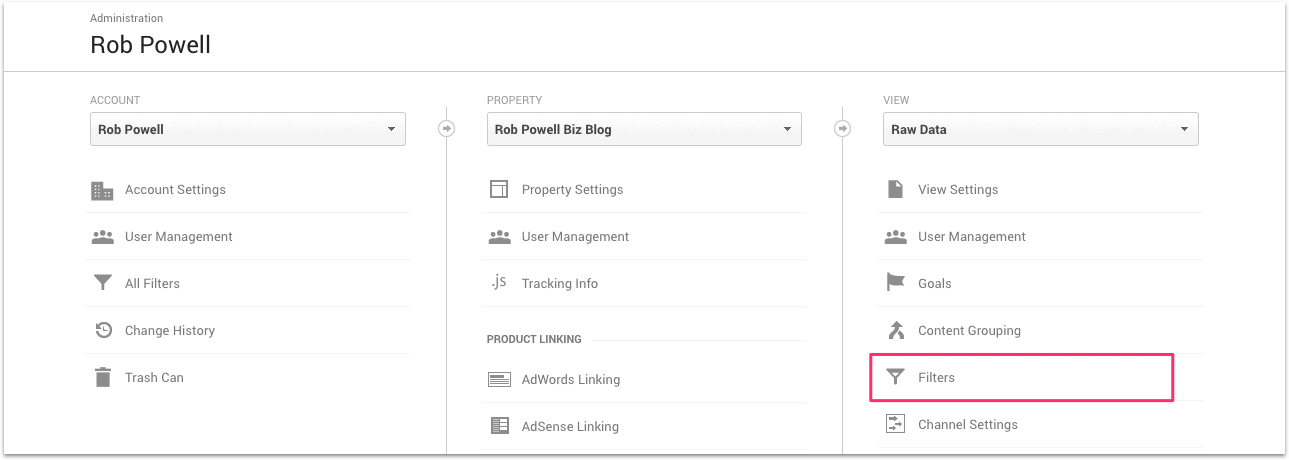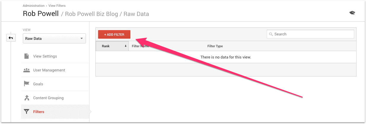في الشاشة التالية ، انتقل إلى عمود العرض وانقر فوق عوامل التصفية :