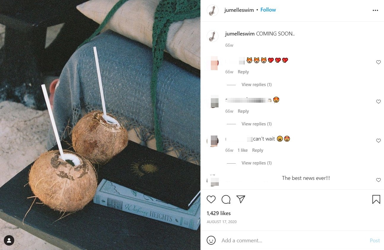 على سبيل المثال ، استفادت ماركة ملابس السباحة Jumelle من وسائل التواصل الاجتماعي لخلق ترقب حول خط إنتاجها الجديد.