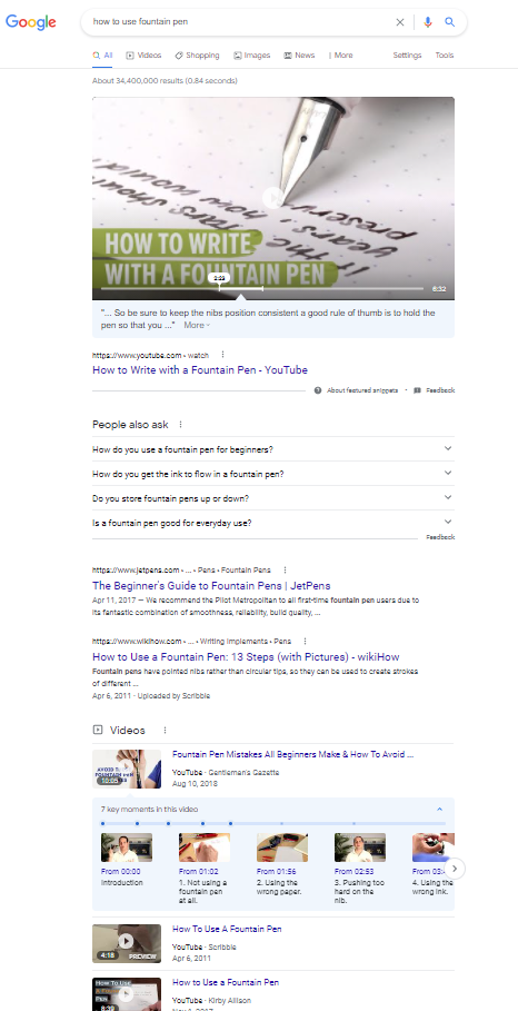 اليوم ، جوجل بارع في تلبية النية من وراء البحث. على سبيل المثال ، تعرف Google أن شخصًا ما يبحث عن "زيت الأفوكادو" من المحتمل أن يبحث عن شراء منتج أو العثور على وصفات أو قراءة معلومات غذائية. بالنسبة للكلمات الرئيسية التنافسية ، ستجد Google أفضل الصفحات لتلبية الاستفسارات بغض النظر عن التحسينات الفنية التي تم نشرها لتعزيز الرؤية العضوية.