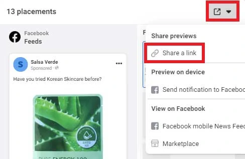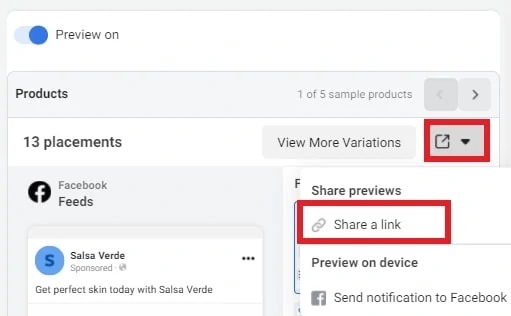 - أخيرًا ، من المفيد أن تقوم بمعاينة إعلانك. يجب نشر تغييراتك قبل أن تتمكن من معاينة كيفية عرض المستهلكين لإعلانك. بمجرد النشر ، انقر فوق زر التبديل في الجزء العلوي الأيسر من المعاينة وانقر فوق مشاركة ارتباط.