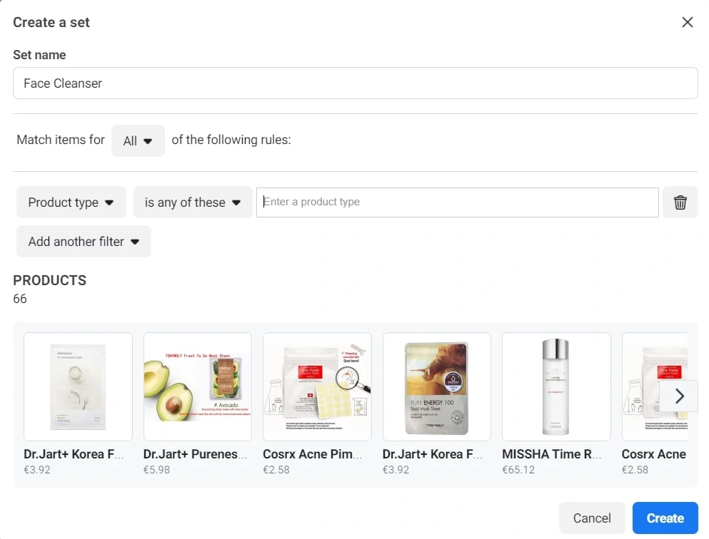 أولاً ، دعنا نناقش خيار Facebook التلقائي لإضافة عوامل تصفية لإنشاء مجموعات منتجات.