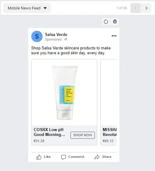 انسخ الرابط إلى متصفحك وقم بتبديل المواضع لترى كيف سيظهر إعلانك مع أسماء المنتجات والصور والأوصاف.