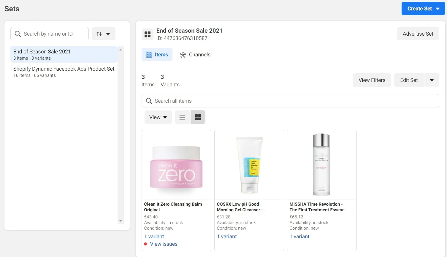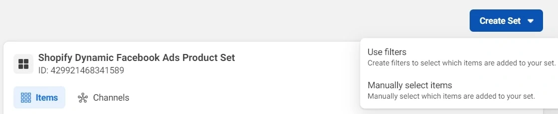 انتقل إلى Facebook Commerce Manager - Catalog - Sets