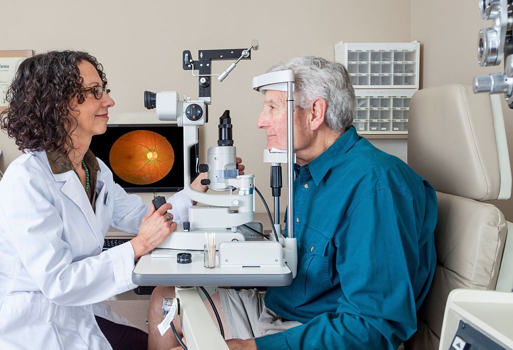 طبيب العيون يقوم بفحص عين لكبار المرضى