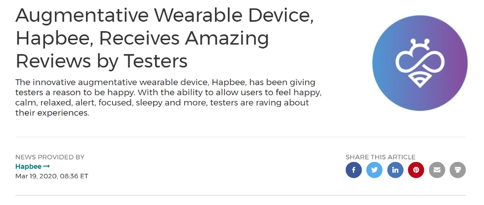 إذا كان لديك الوقت والميل ، بالطبع ، يمكنك ربط تسويق المحتوى الخاص بك ببعض العلاقات العامة الكلاسيكية من خلال توزيع البيانات الصحفية. يمكنك أن تكون ترويجيًا بشكل مباشر أكثر بقطعة العلاقات العامة - يمكنك مشاهدتها على أنها بيان بالوصول والنية. على سبيل المثال ، ألق نظرة أدناه على بيان صحفي أصدرته شركة التكنولوجيا القابلة للارتداء Hapbee من خلال PR Newswire في أوائل عام 2020: