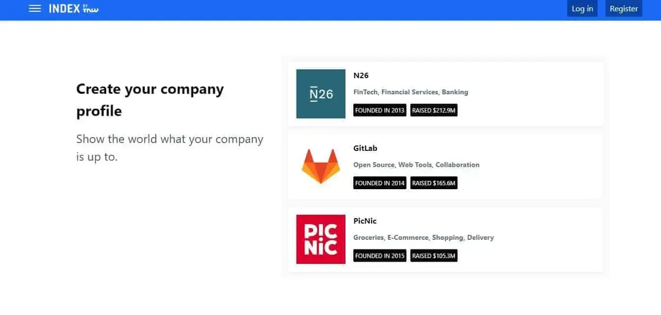 إذا كنت ترغب في إدراج شركتك على index.co ، فستحتاج أولاً إلى إنشاء حساب. بمجرد إنشاء حساب يمكنك الترويج لبدء التشغيل الخاص بك على الموقع. مع أكثر من 110،000 زيارة شهرية للموقع ، فإنه يوفر لك عددًا جيدًا من الأشخاص للترويج له.