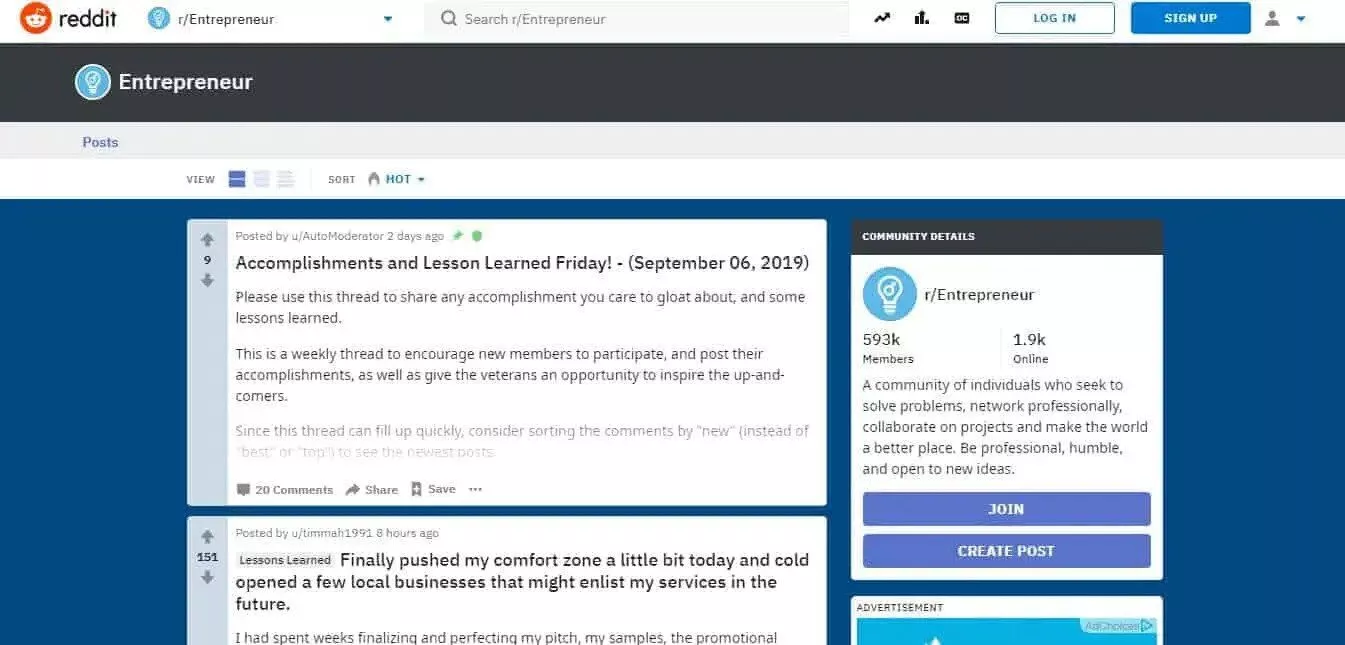 Reddit - Entrepreneur هو أحد أفضل المنتديات الفرعية على الموقع لاستخدامها في إثارة ضجة حول شركة SaaS. r / Entrepreneur هو مجتمع Reddit مصمم للتواصل الاحترافي. لا يمكنك تقديم عملك إليه ، في حد ذاته. ما يمكنك فعله هو مشاركة الأخبار والقصص حول شركتك على جمهور كبير.