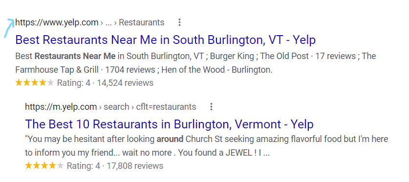 سيرى مُحسّنات محرّكات البحث أن موقعك على الويب يحتل مرتبة في الصفحة الأولى من Google عندما يستخدم المستخدمون في موقعك الكلمات الرئيسية المتعلقة بالمطعم.