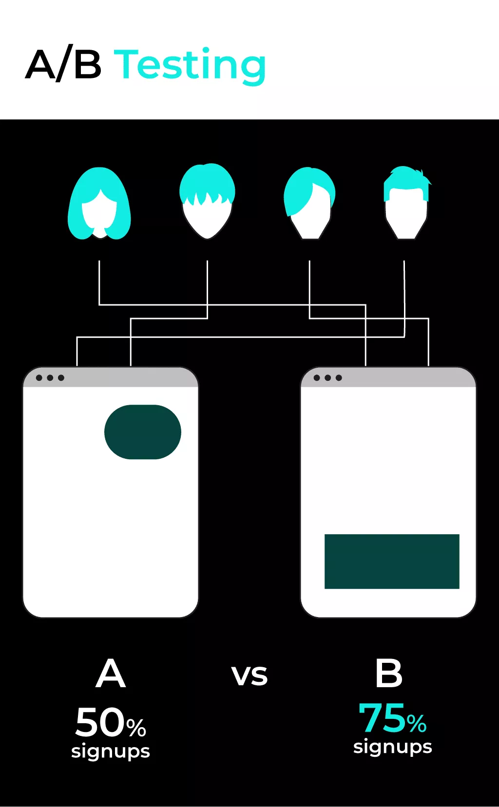 على سبيل المثال ، يمكنك إنشاء نسختين من صفحتك المقصودة ، وتحديد أيهما أكثر جاذبية للزوار من خلال قياس معدل الارتداد ومعدل الاشتراك.