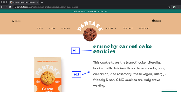 تعد صفحة المنتج أدناه من Partake Foods مثالاً رائعًا على الجمع بين كل هذه الميزات بشكل فعال.