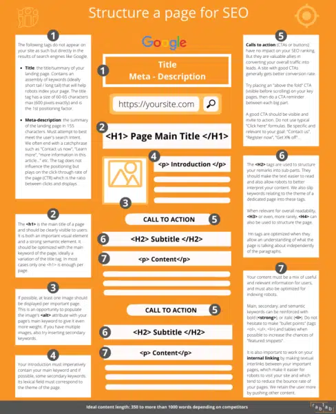 الهدف: إرضاء روبوتات الفهرسة وزوارك. يجب أن يجدوا المعلومات التي يبحثون عنها في المحتوى الخاص بك. امنحهم أكبر قدر ممكن من التفاصيل ذات الصلة وقادهم إلى التحويل.
