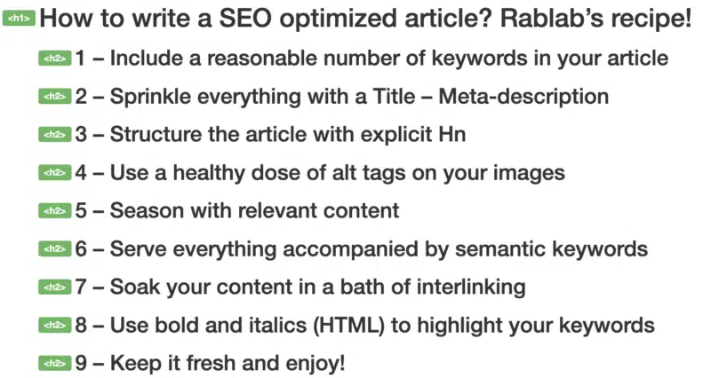 هذه هي النصيحة التي تُنهي هذا الجزء: تحسين علامات Hn بكلمات رئيسية ، ولكن تأكد من أنها مناسبة للقارئ!
