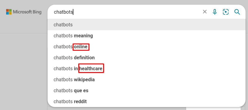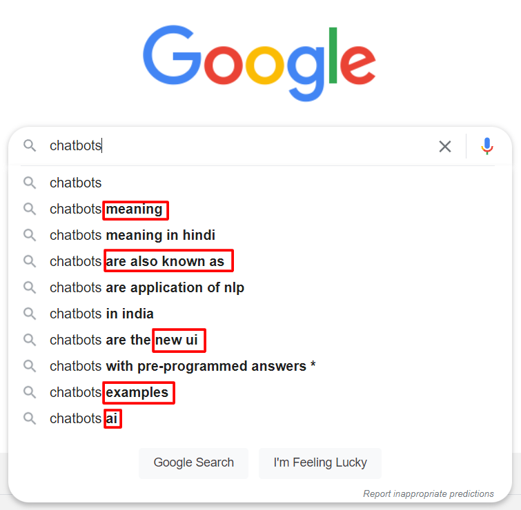 عندما تكتب chatbots في مربع البحث على Google ، تحصل على الكثير من اقتراحات الإكمال التلقائي.