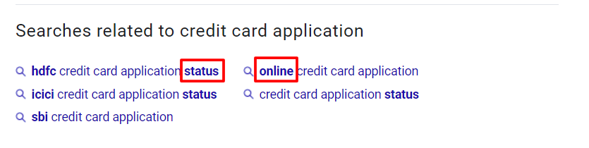 في هذه الحالة ، تعد " التقديم عبر الإنترنت" و "عملية التقديم عبر الإنترنت" و "الرسوم" بعضًا من أفكار الكلمات الرئيسية في LSI.