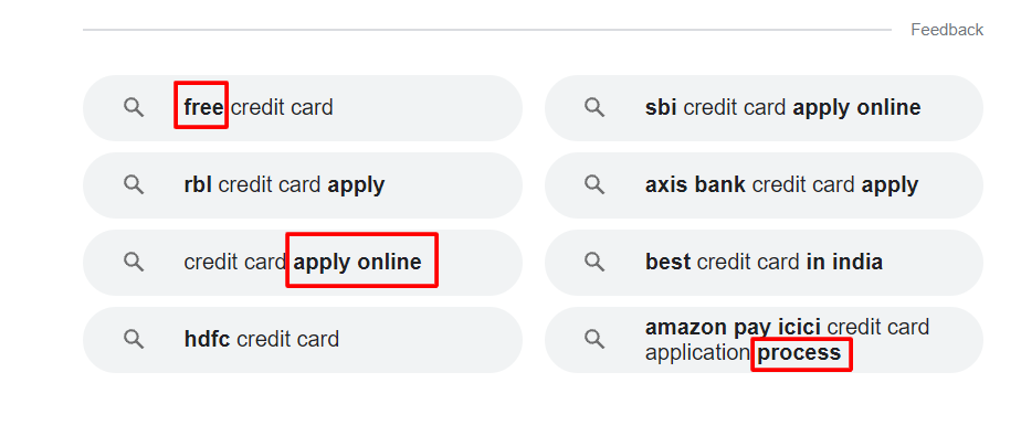 انظر إلى عمليات البحث هذه المتعلقة بـ " تطبيق بطاقة الائتمان" على Google: