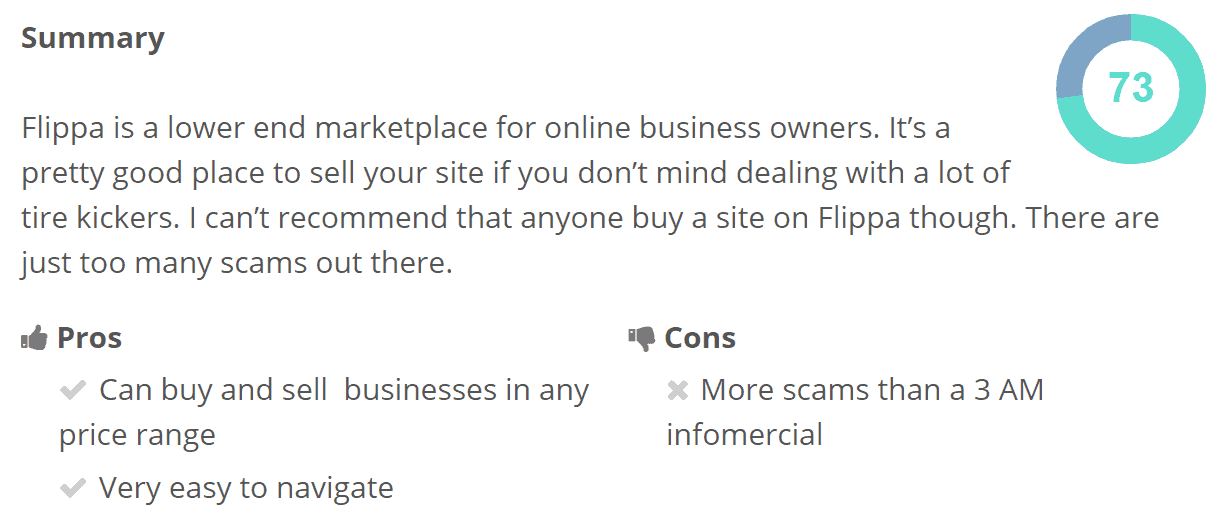 على سبيل المثال ، كان Flippa في حالة ساخنة مؤخرًا ، حيث اشتكى العملاء من أنه تم سحبهم بشكل غير عادل من قوائم Flippa عبر الإنترنت.