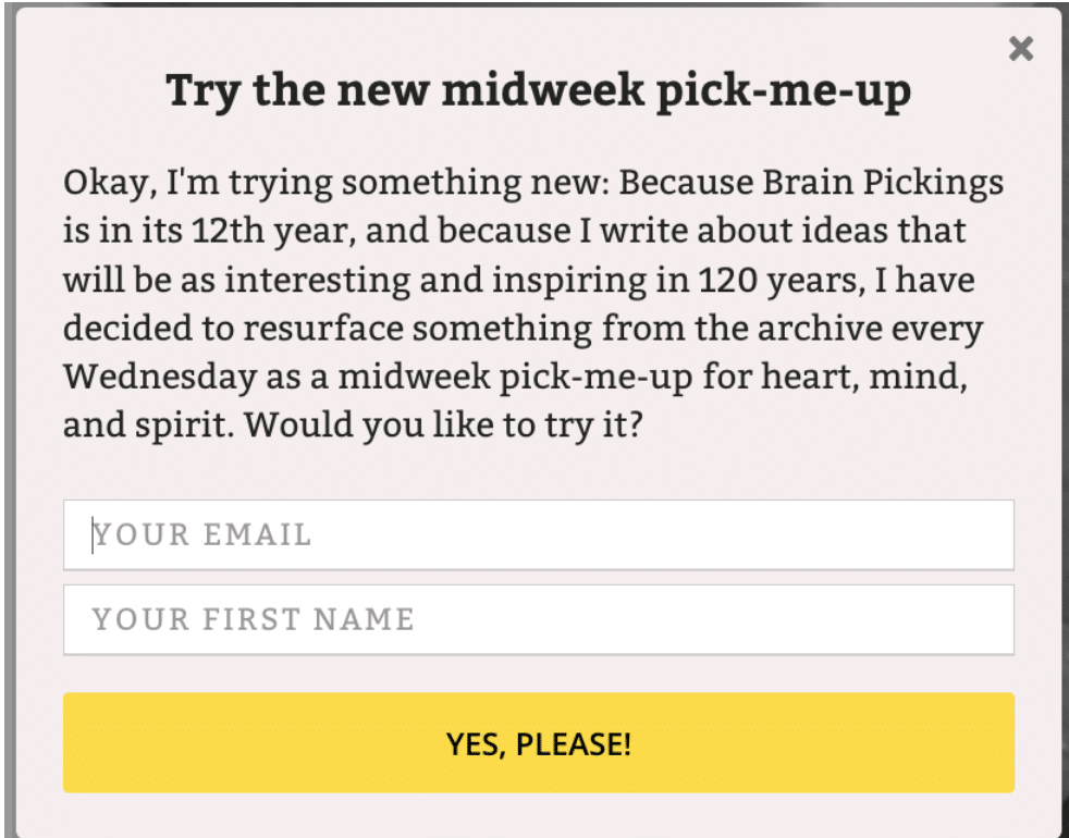 Brain Pickings konzentrierten sich jahrelang auf eine einzige wöchentliche E-Mail. Ich bekomme viele E-Mails – aber die Brain Pickings-E-Mail war immer eine meiner Lieblingslektüren der Woche.