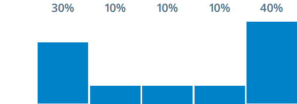 Nicht jeder Touchpoint ist gleich. Das W-förmige Modell berücksichtigt dies und teilt 90 % des Guthabens gleichmäßig auf die Meilensteine First Touch, Last Touch und qualifizierter Lead auf. Die restlichen 10 % werden gleichmäßig auf alle anderen Touchpoints aufgeteilt.