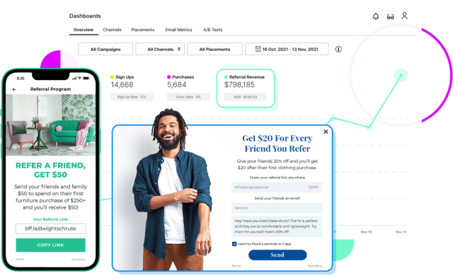 Die Empfehlungsprogramm-Software wurde entwickelt, um Ihnen bei der Durchführung einer erfolgreichen Empfehlungsmarketingkampagne zu helfen und Ihre Kunden wirklich glücklich zu machen. Aus diesem Grund haben wir unsere eigene Software entwickelt, die einfach zu bedienen und mit großartigen Funktionen ausgestattet ist. Ob Sie Ihre Kunden mit Bargeld oder Produkten belohnen möchten, Sie können alles von einem einfachen Ort aus erledigen. Mit unserer Empfehlungsprogramm-Software haben Sie alles, was Sie brauchen, um das Beste aus einer Empfehlungsmarketing-Kampagne herauszuholen.